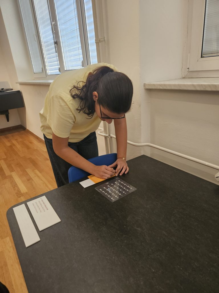 Učenici drugih razreda izborne psihologije su 5. 11. 2025., a učenici trećih razreda izborne psihologije su 6. 11. 2025. u pratnji prof. Susanne-Gordana Homan posjetili Tiflološki muzej i Botanički vrt. Tiflološki muzej jedan je od rijetkih muzeja u Europi koji se bavi problematikom osoba oštećena vida i nalazi se od 1959. godine u Draškovićevoj ulici. Postava muzeja u potpunosti je pristupačna ne samo slijepim i slabovidnim osobama već i posjetiteljima oštećena sluha i osobama u invalidskim kolicima. Učenicima se osobito sviđala “tamna soba” kroz koju su se morali kretati u potpunom mraku. Imali su prilike pisati na Brailleovom pisaćem stroju i pisati na brajici pomoću specijalnih tablica u koje se umetne papir i šilom utiskuju točke. Nakon razgledavanja Tiflološkog muzeja posjetili smo Botanički vrt koji se nalazi u blizini. Istraživanja pokazuju da šetnja prirodom smanjuje anksioznost, jača fizičko i mentalno zdravlje. U to smo se i sami uvjerili, relaksirajuća šetnja Botaničkim vrtom izazvala je u nama puno pozitivnih emocija.